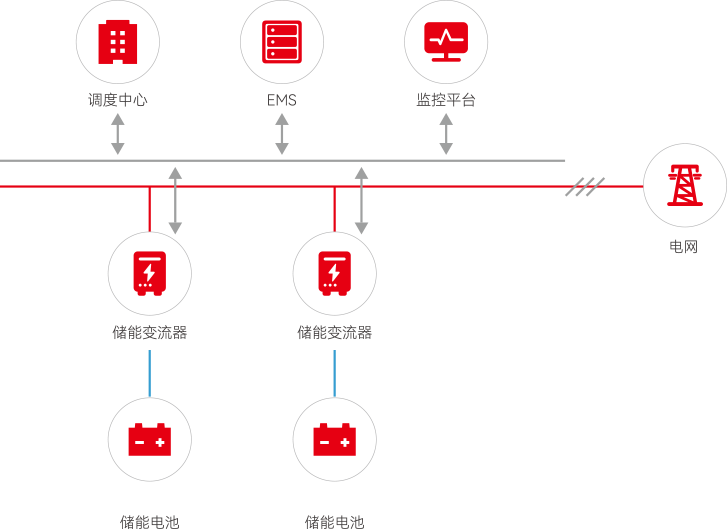 YABO亚博EMS及储能产品可为电网提供动态扩容、备用电源等支持,并可满足电网的各种调节指令,缓解电网系统